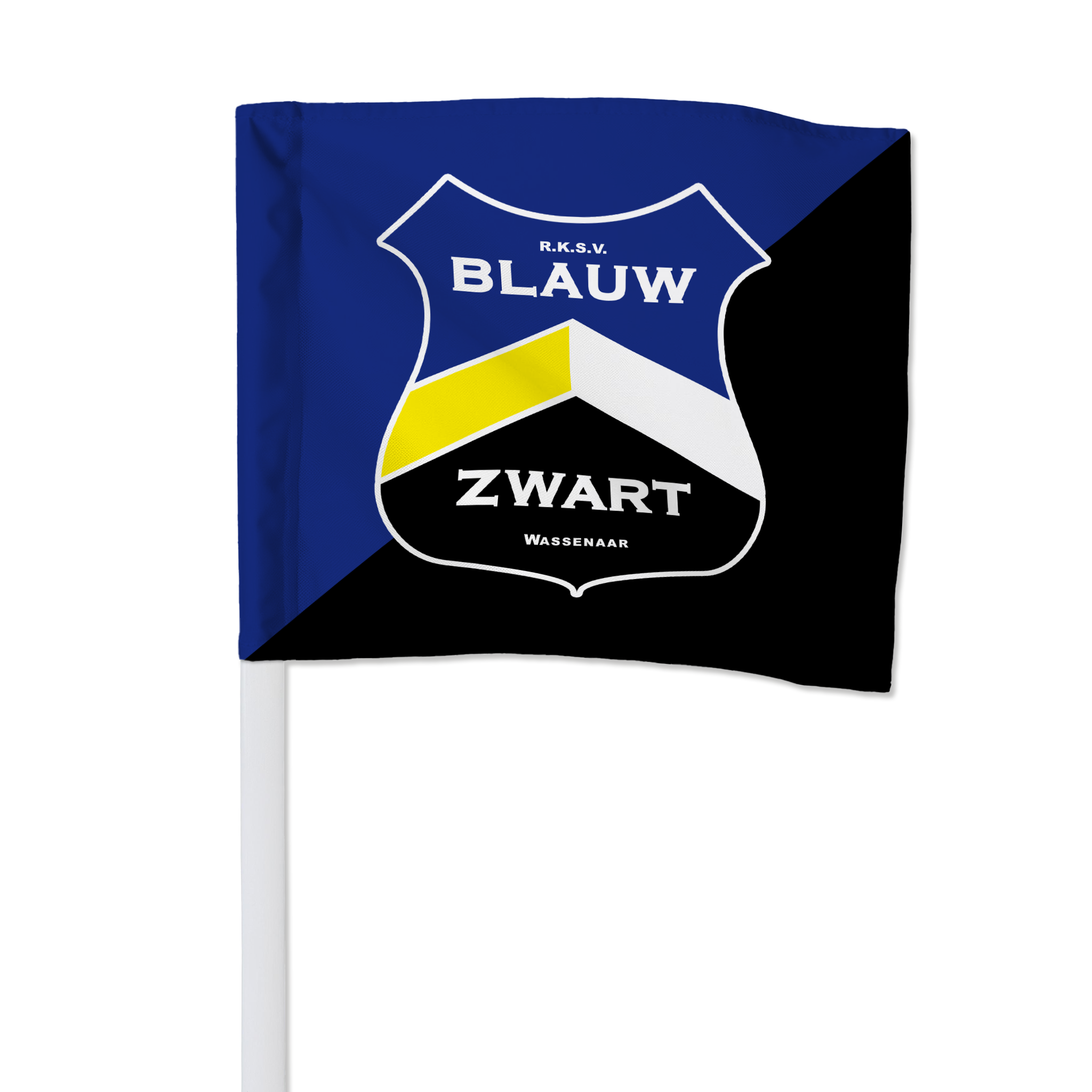 Deze hoogwaardige, gepersonaliseerde hoekvlag is speciaal ontworpen voor voetbalvereniging Blauw Zwart.