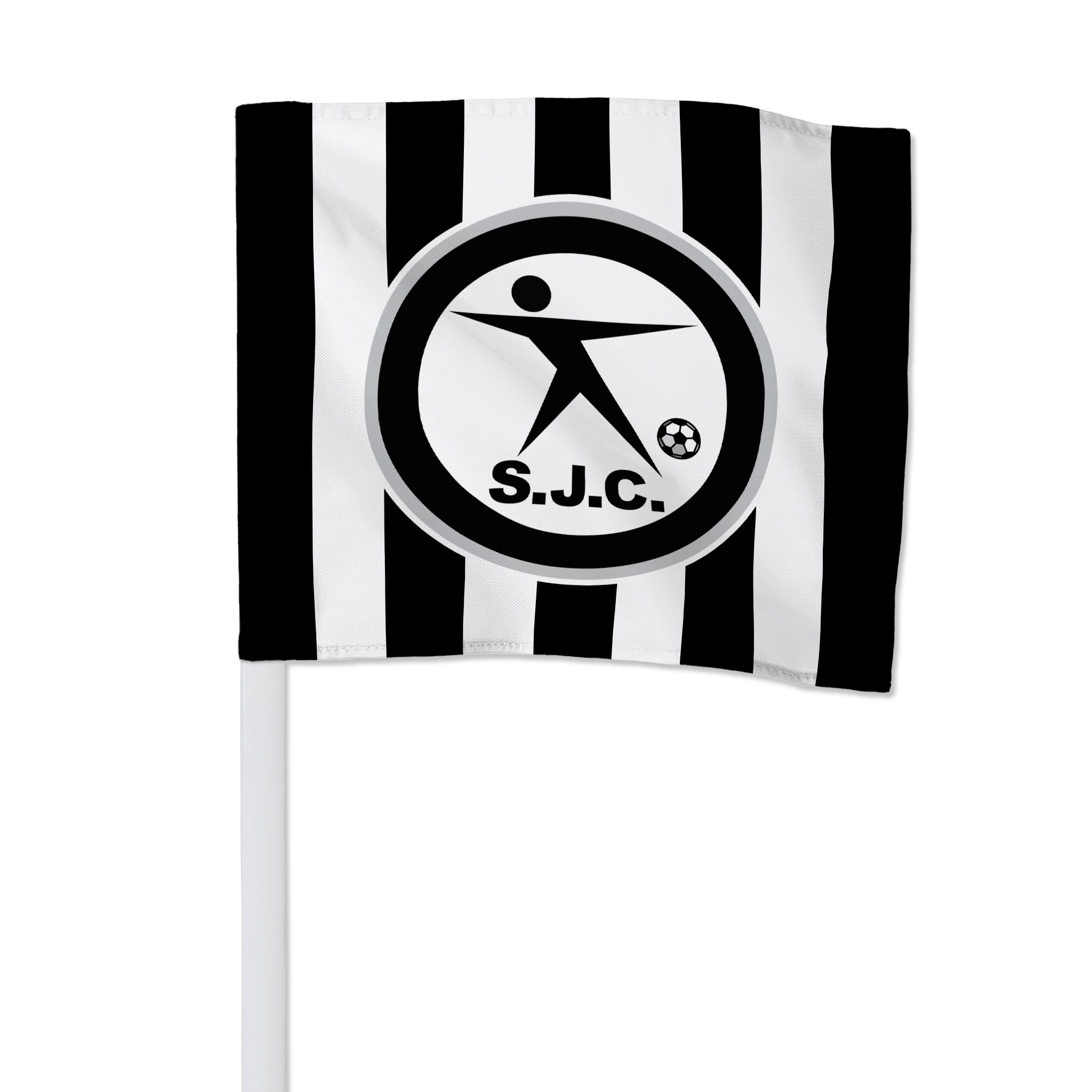 Deze hoogwaardige, gepersonaliseerde hoekvlag is speciaal ontworpen voor voetbalvereniging SJC.